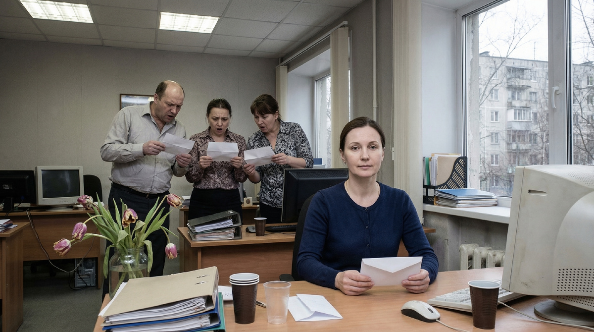 Эта короткая сцена могла бы пройти мимо, как проходили сотни других. Нина и раньше слышала вещи похуже, только сказанные мягче. Но именно сегодня, на фоне тюльпанов, сертификатов и громких тостов, слова как будто легли каждый на своё место. Без шума. Без драмы. Просто встали в ряд.