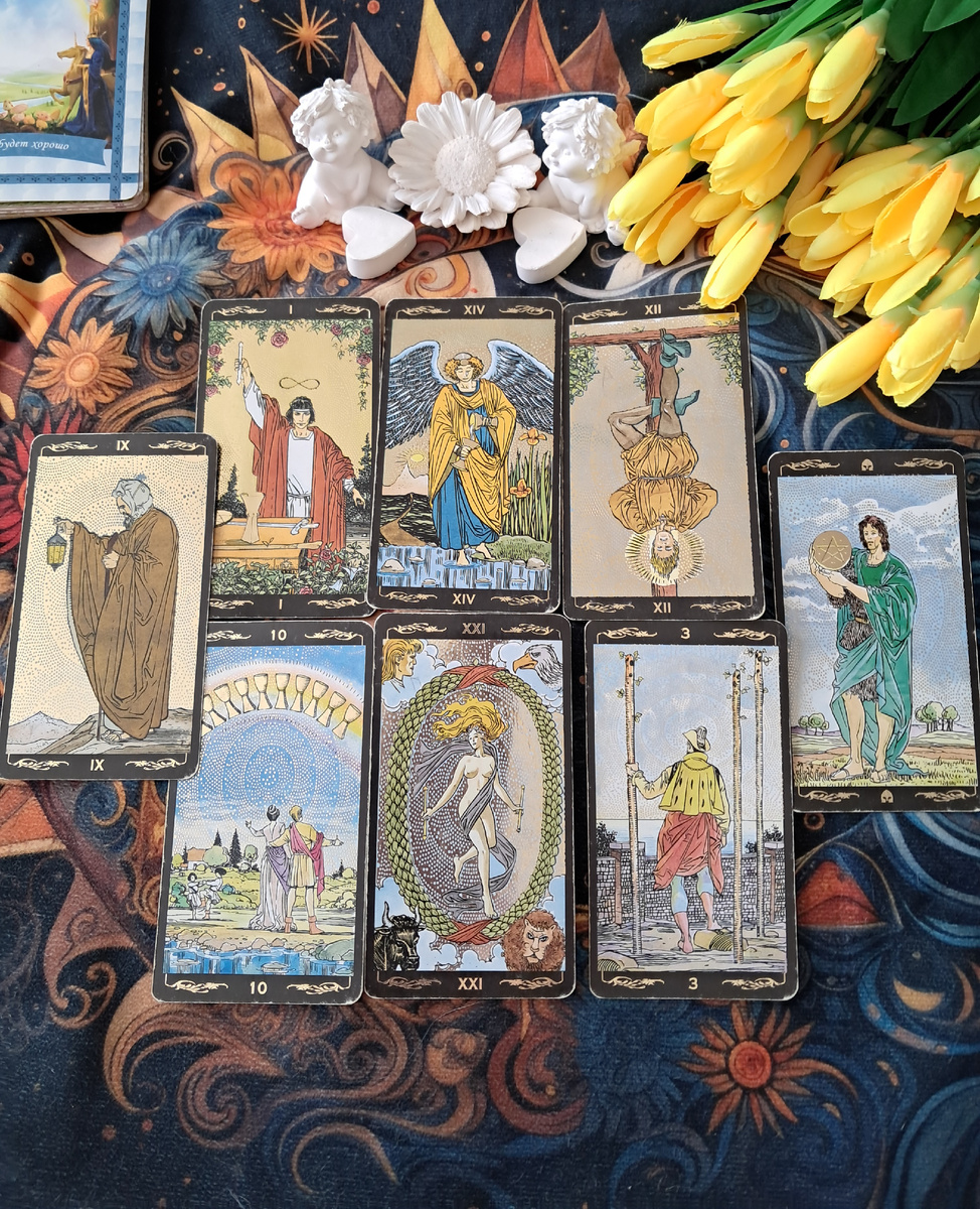 Этот расклад рисует образ очень глубокого, многогранного и духовно зрелого мужчины. Карты указывают на человека, который прошёл большой внутренний путь и теперь готов к созданию гармоничного союза. Давайте разберём каждую карту как черту его личности.