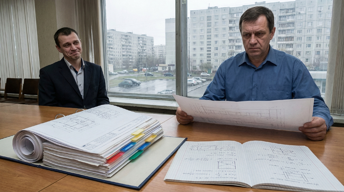 У него на столе лежали листы. Не те, что мы согласовывали. Другие. На них были схемы, и рядом — подписи. Он держал линейку так, будто она ему нужна не для прямой линии, а чтобы не дрожали руки.