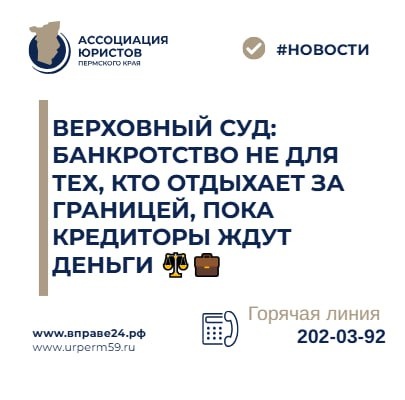 ⚖️💼 ⚖️ Конкурсный кредитор обратился с жалобой в Верховный Суд на решения нижестоящих инстанций, которые освободили должника от дальнейшего исполнения обязательств, несмотря на вопиющие обстоятельства. В рамках дела о банкротстве был сформирован реестр требований на сумму более 145 миллионов рублей, из которых кредиторам удалось получить лишь 7 процентов. 📋 Однако кредитора насторожило другое: на протяжении всей процедуры банкротства должник регулярно выезжал на отдых за границу. При этом накануне инициирования банкротства были признаны недействительными два договора поручительства, заключённые должником. 🏛 Суды трёх инстанций, освобождая гражданина от обязательств, сочли эти обстоятельства несущественными. Поездки оплачивали третьи лица, а признание договоров поручительства недействительными не повлекло материального ущерба — такова была логика нижестоящих судов. ✅ Верховный Суд России с таким подходом категорически не согласился. Судебная коллегия по экономическим спорам отмен