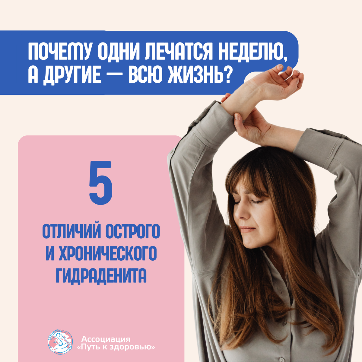 Гидраденит — это воспаление потовых желез, которое может быть острым или хроническим. Это разные состояния, хотя внешне они могут быть похожи. Рассказываем о пяти ключевых отличиях.