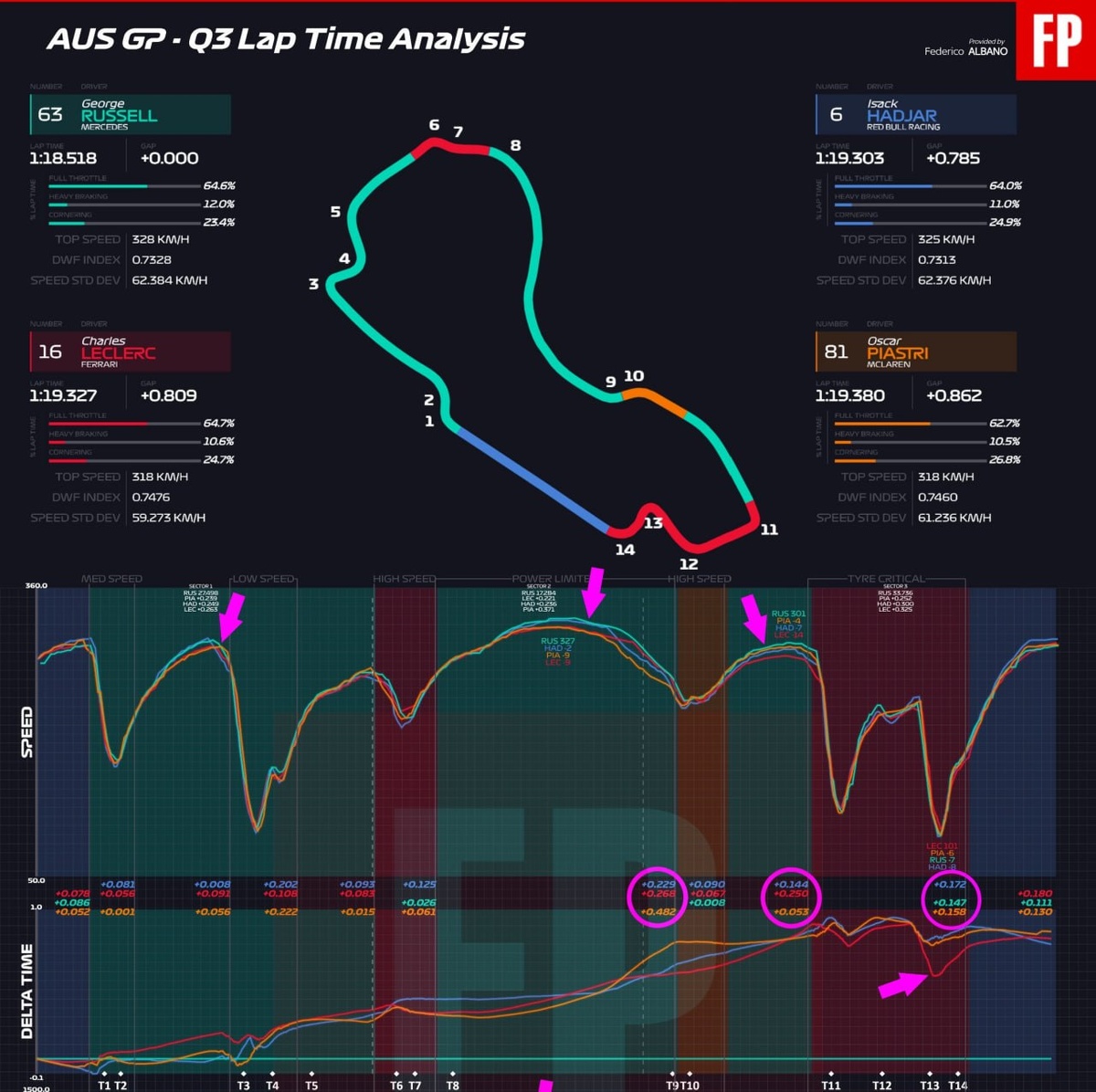 Больше всех шокирован отрывом Мерседеса оказался Леклер, ведь они уступают Расселу на каждой прямой и могут отыгрывать время только в