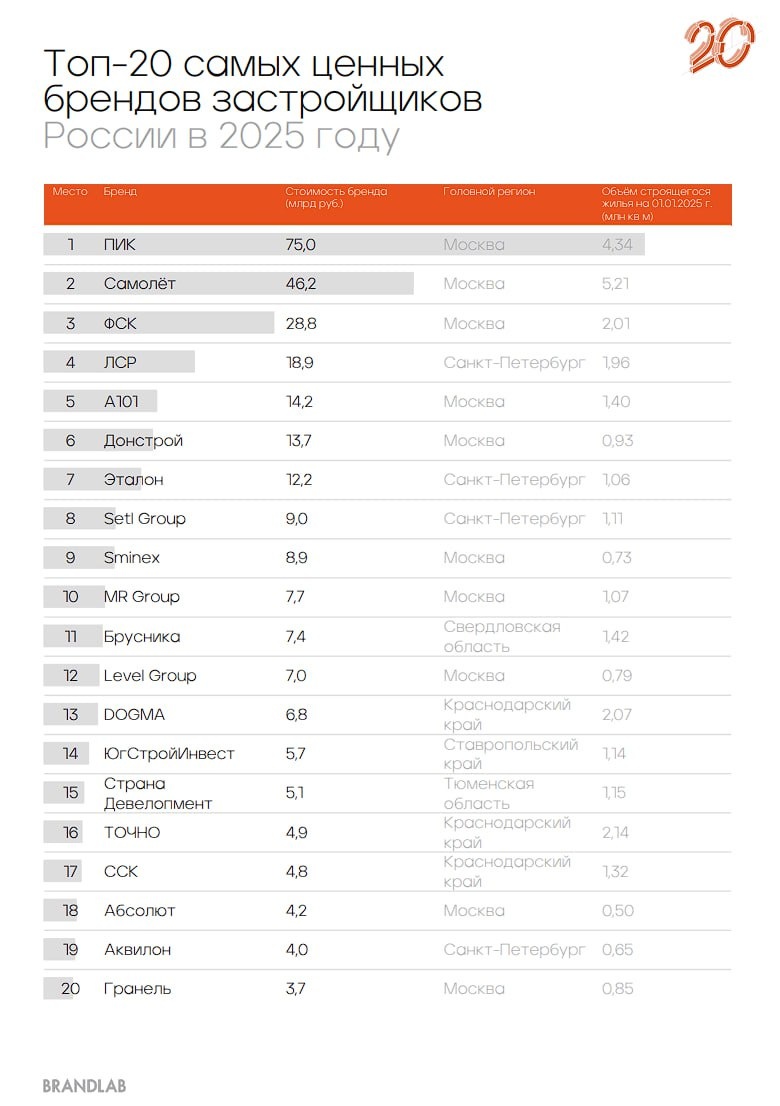 На двух лидеров рейтинга — ПИК и «Самолет» — приходится 42% от совокупной стоимости 20 брендов-застройщиков (121,2 млрд рублей). Общая капитализация «двадцатки» оценили в 288 млрд рублей. Как подчеркивают аналитики, в девелопменте бренд рассматривается не как «обертка», а как полноценный актив, напрямую влияющий на выручку, ценовую премию, клиентскую лояльность и HR-привлекательность. А значит и дальнейшую популярность будут продолжать иметь компании, которые системно инвестируют в собственное имя и образ. Белая Каска в Max