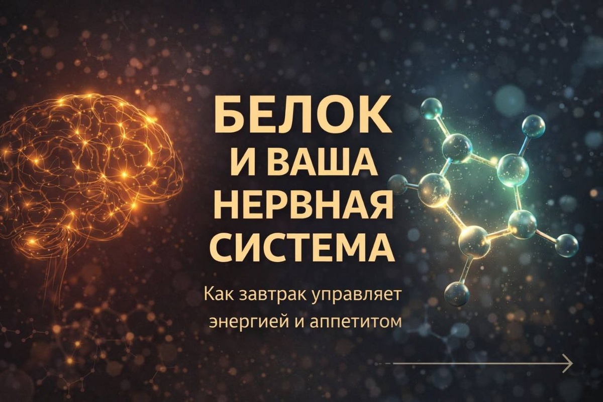 Но на самом деле утренний приём пищи задаёт биохимию всего дня. Особенно если в вашем завтраке есть достаточное количество белка. Доктор Девид Хибер, один из ведущих мировых экспертов по питанию и метаболизму, много лет изучает влияние белка на организм. Его вывод прост. То, что вы съели утром, влияет на ваш мозг, энергию и пищевые привычки в течение дня. Белок поставляет организму аминокислоты. Из них синтезируются нейромедиаторы, в том числе дофамин. Дофамин отвечает за • мотивацию • концентрацию • чувство удовлетворения • контроль аппетита. Когда уровень дофамина снижается, мозг начинает искать быстрые источники удовольствия. Чаще всего это сладкое и перекусы. Белок помогает разорвать этот круг. Аминокислота тирозин, содержащаяся в белке, участвует в синтезе дофамина. Когда утром организм получает достаточное количество белка, нервная система получает сигнал: ресурсов достаточно, можно работать спокойно. Исследования показывают, что люди, которые начинают день с белкового завт
