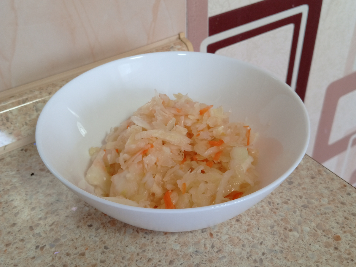· Вода. Если капуста суховата и сока мало, можно добавить немного кипячёной холодной воды — буквально полстакана.