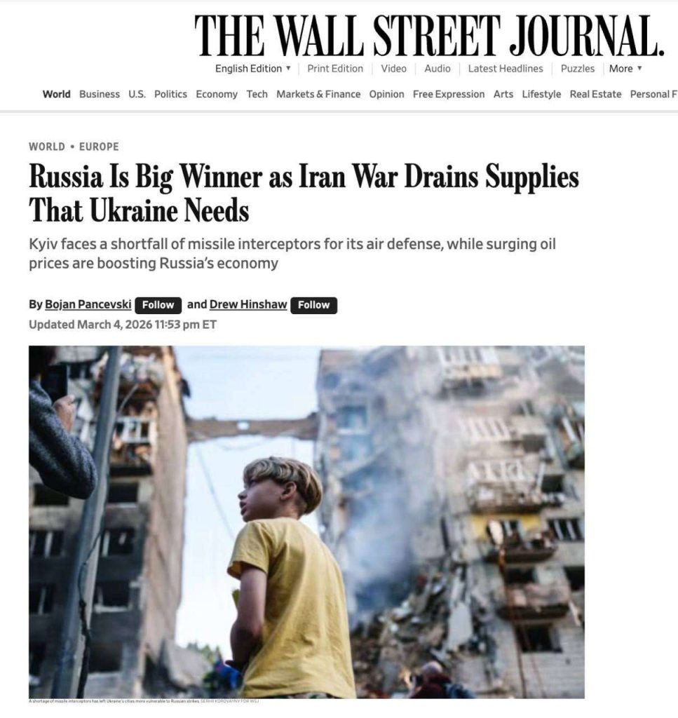 По данным The Wall Street Journal, Украина уже сталкивается с нехваткой ракет-перехватчиков для своих систем противовоздушной обороны. «До начала операции против Ирана узкие места в производстве американских систем Patriot уже истощили запасы для Украины и оставили европейских союзников в очередях на годы. Этот дефицит позволил России использовать бреши в украинской ПВО, нанося удары по энергетической инфраструктуре» — отмечает издание. В первые дни конфликта США и страны Персидского залива выпустили сотни перехватчиков против атак Ирана. По оценкам аналитиков, их запасов хватит лишь на несколько дней при интенсивных ударах, что может вынудить Вашингтон перебрасывать ракеты из других регионов, ослабляя позиции в мире.