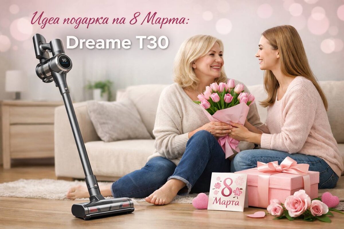 Беспроводной пылесос Dreame T30 может стать именно таким подарком для мамы на 8 Марта. Он легкий, мощный и удобный в использовании. Благодаря двигателю до 150 000 оборотов в минуту и силе всасывания до 190 AW пылесос легко справляется с пылью, крошками и шерстью домашних животных. При этом вес устройства около 1,7 кг, поэтому убираться можно без лишней нагрузки. Аккумулятора хватает до 90 минут работы — этого достаточно для уборки всей квартиры без подзарядки. Контейнер легко очищается, а несколько насадок помогают убирать полы, мебель и труднодоступные места. Dreame T30 работает тихо, не требует проводов и всегда готов к быстрой уборке. Такой подарок показывает заботу: техника, которая экономит время и делает дом чище каждый день. Практичный, современный и полезный — отличный вариант подарка для мамы на 8 Марта. https://iphone24.ru/item/pylesos-vertikalnyy-dreame-t30-seryy.html