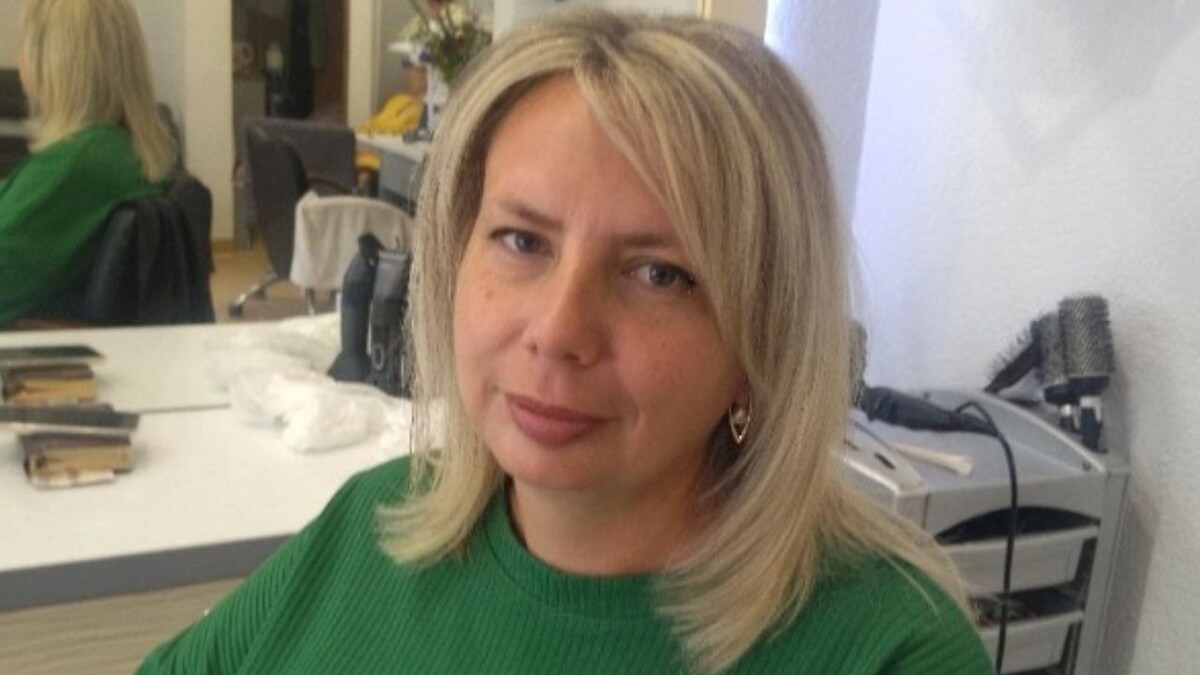 Фотография: женщина лет тридцати восьми, крашеная, помада яркая, в платье с леопардовым принтом. За ней — двое мальчишек-подростков.