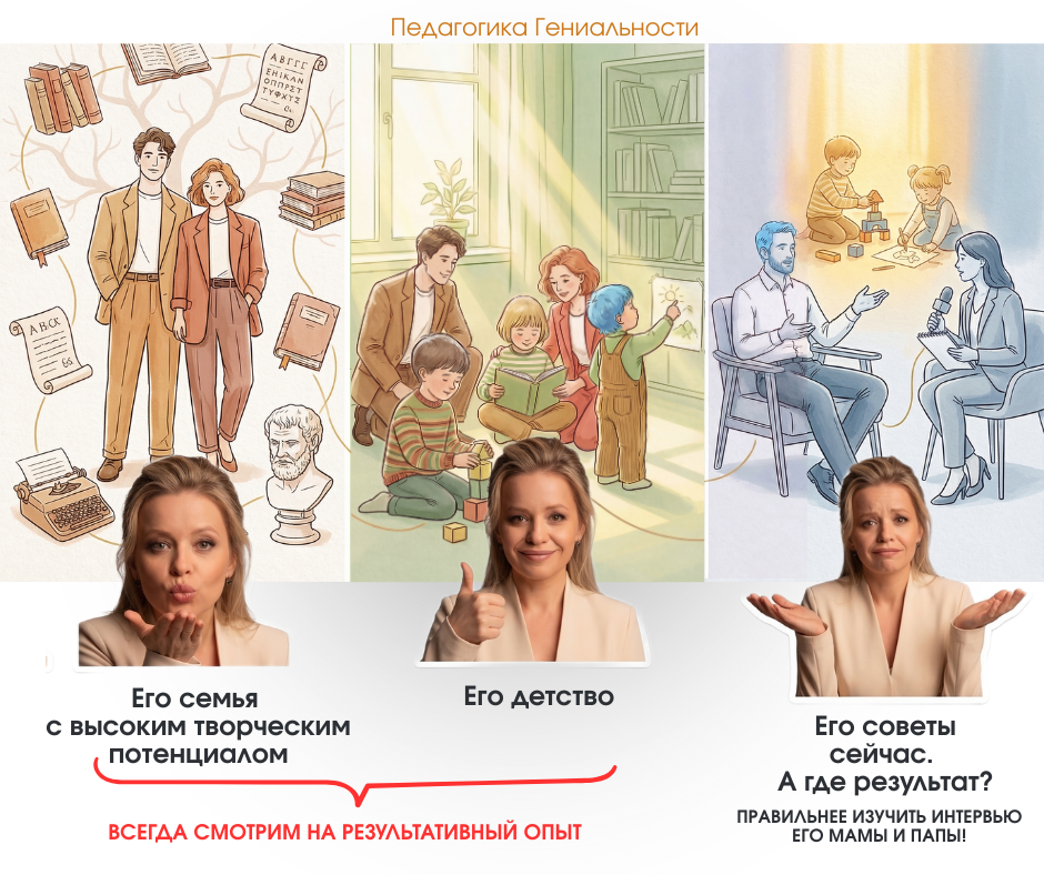 Недавно знакомая молодая пара с восторгом рассказывала мне, что они будут прислушиваться к советам Артемия Лебедева о воспитании детей. Мол, он сам крутой папа, делится опытом, рассказывает, как воспитать успешного ребенка. Я их внимательно слушала, а про себя думала… «дорогие мои, всё ровно наоборот!». Смотреть надо не на то, как Артемий Лебедев воспитывает своих детей. Смотреть надо на то, как воспитывали его самого. Потому что результаты его родительских усилий мы увидим лет через двадцать. А вот результаты усилий его родителей — уже перед нами. И они впечатляют! Приглядимся повнимательнее... Артемий Лебедев родился в 1975 году в семье, где мама — Татьяна Толстая, писательница, внучка Алексея Толстого («Хождением по мукам»). Отец — Андрей Лебедев, филолог, профессор, один из авторов Философского энциклопедического словаря и Большой Российской энциклопедии. А его дед — генерал Валентин Лебедев, но и это не всё. Андрей Лебедев, отец Артемия, — автор фундаментального исследования текс