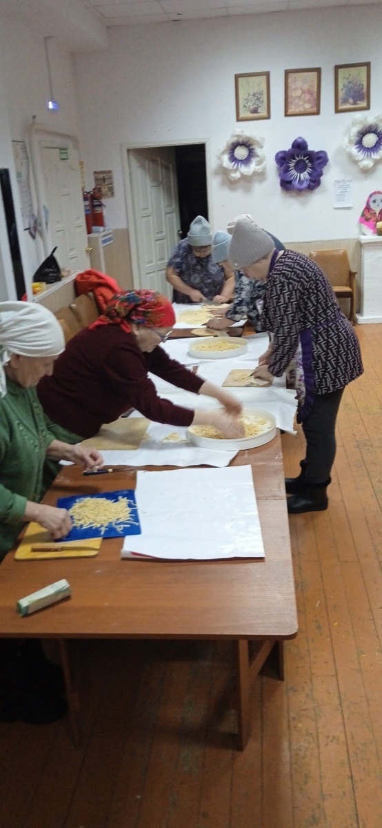 Это символ заботы и поддержки, преодолевающий тысячи километров. В сельском клубе царила особая атмосфера: женщины разных возрастов объединились, ловко замешивая тесто и нарезая лапшу. Каждая вкладывала в работу пожелания здоровья, мужества и скорейшего возвращения домой.