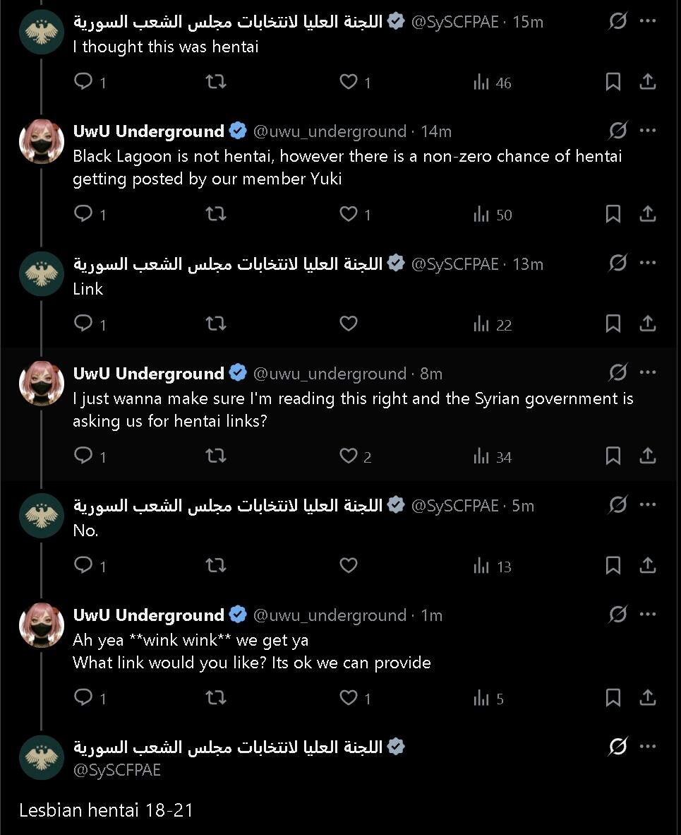 Мем: Нетрадиционный ХЕНТАЙ с девушками* захотел официальный аккаунт сирийского правительства — он попросил одного из твиттерских ссылку на