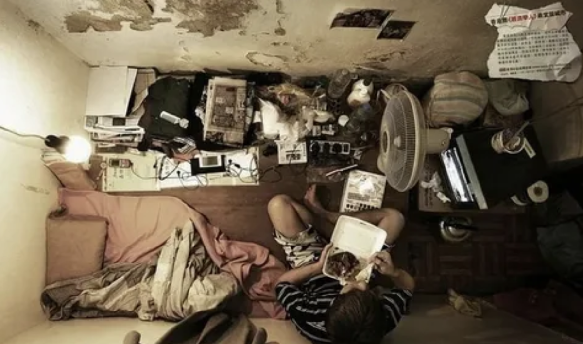 там живёт человек. И платит за это половину своей зарплаты. Гонконг считается одним из самых богатых городов мира. Финансовый центр.