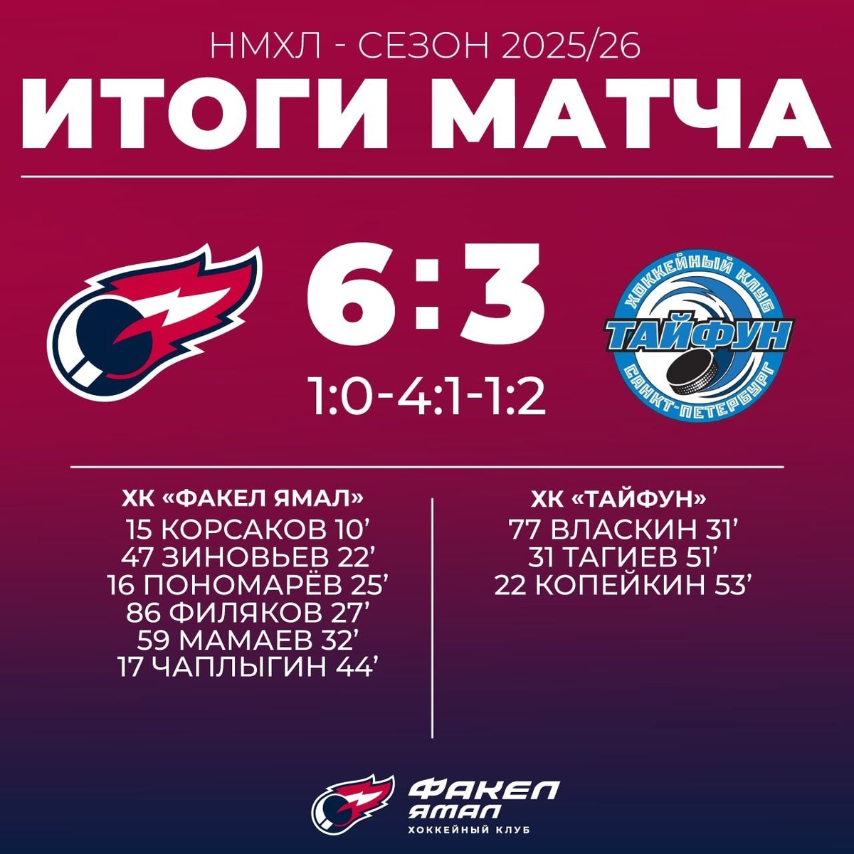«Факел Ямал» мощно стартовал в домашней серии НМХЛ, переиграв петербургский «Тайфун» со счетом 6:3
