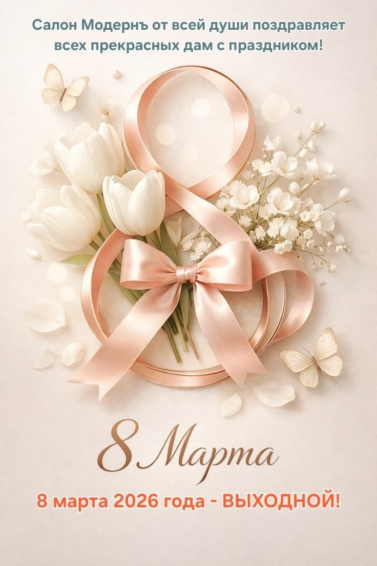 Объявление о работе Салона "Модернъ" 8 марта 2026 года!