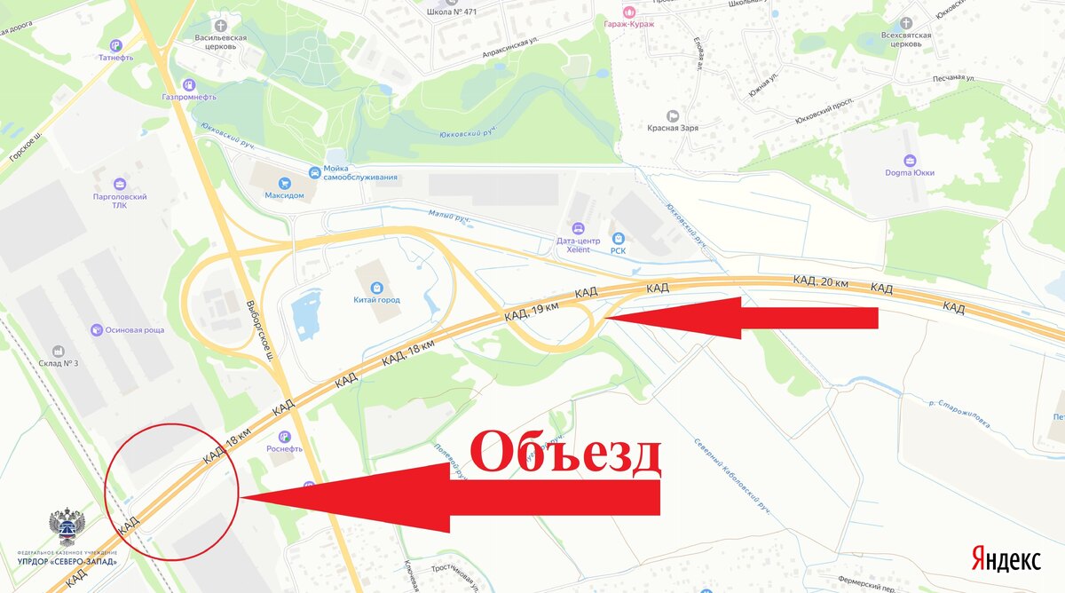 На развязке КАД с Выборгским шоссе полностью перекроют съезд