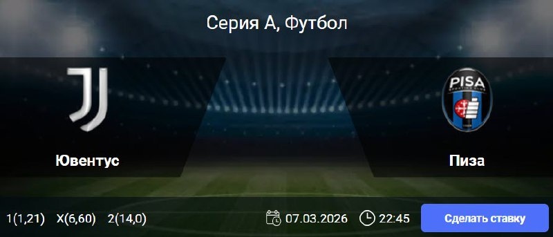 ) Статистика Ювентуса: Статистические тренды указывают на высокую результативность: в шести последних матчах чемпионата с участием «Ювентуса» забивалось не менее двух голов. На отрезке в десять последних туров Серии А туринцы одержали четыре победы при трех ничьих и трех поражениях. На домашней арене атака «Ювентуса» работает исправно: в пяти из семи предыдущих матчей на своем поле команда забивала минимум дважды. Статистика Пизы: Гостевая статистика «Пизы» в сезоне-2025/26 также не внушает оптимизма: команда пропускала в 12 из 13 выездных встреч. Серия без побед в чемпионате достигла 15 матчей (5 ничьих и 10 поражений). В атаке наблюдаются явные проблемы: в пяти последних турах клуб не забивал более одного гола за игру. 🎯 П1 и ТБ (2,5) 🎲 кф (1,63) 🎯 Фора 1 (-1,5) 🎲 кф (1,62) 🎯 ТБ (2,5) 🎲 кф (1,61) 👉 СДЕЛАТЬ СТАВКУ 🎁 ФРИБЕТ WINLINE - 3000₽ (промокод: BETWIN) 👉 СМОТРЕТЬ ПРОГНОЗ