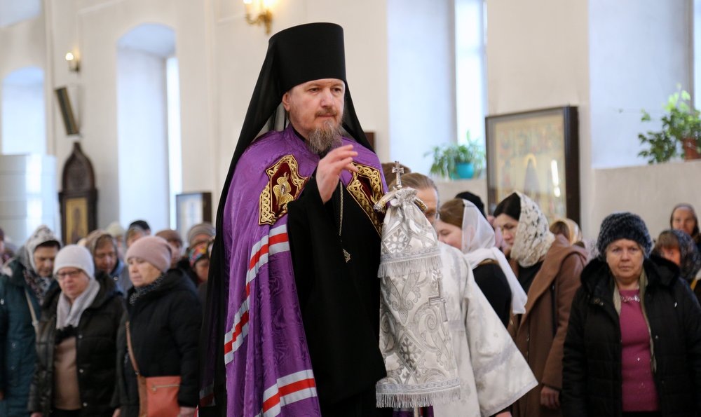 Его Преосвященству сослужили клирики собора: священники Виктор Кончаков, Сергий Растрёпин, иеромонах Питирим (Сухов), диаконы Сергий Демидов и Алексий Сайганов. Богослужебные песнопения исполнил архиерейский хор под управлением регента Ирины Якимовой.