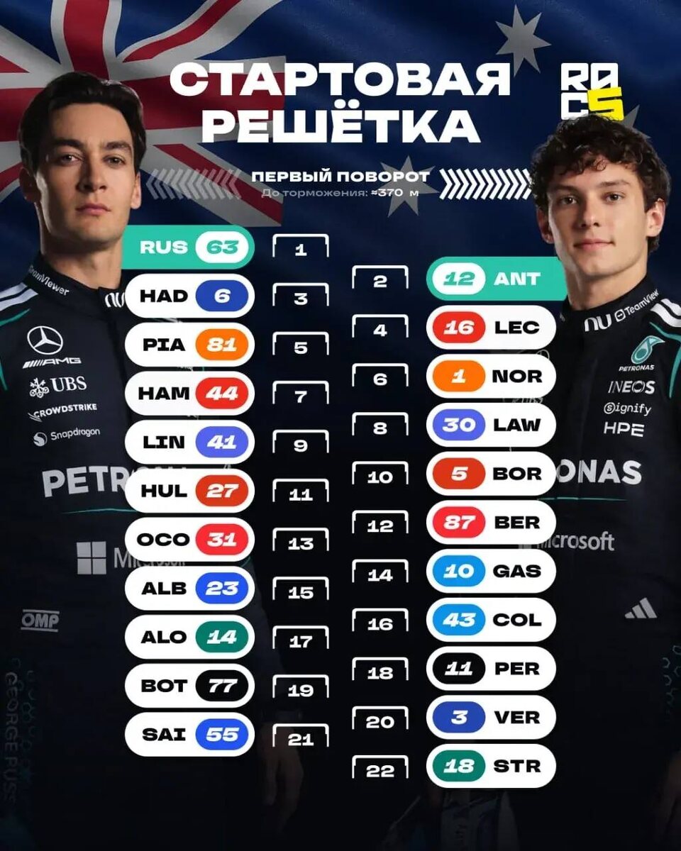 🇦🇺 Предварительная стартовая решётка гран-при Австралии.
