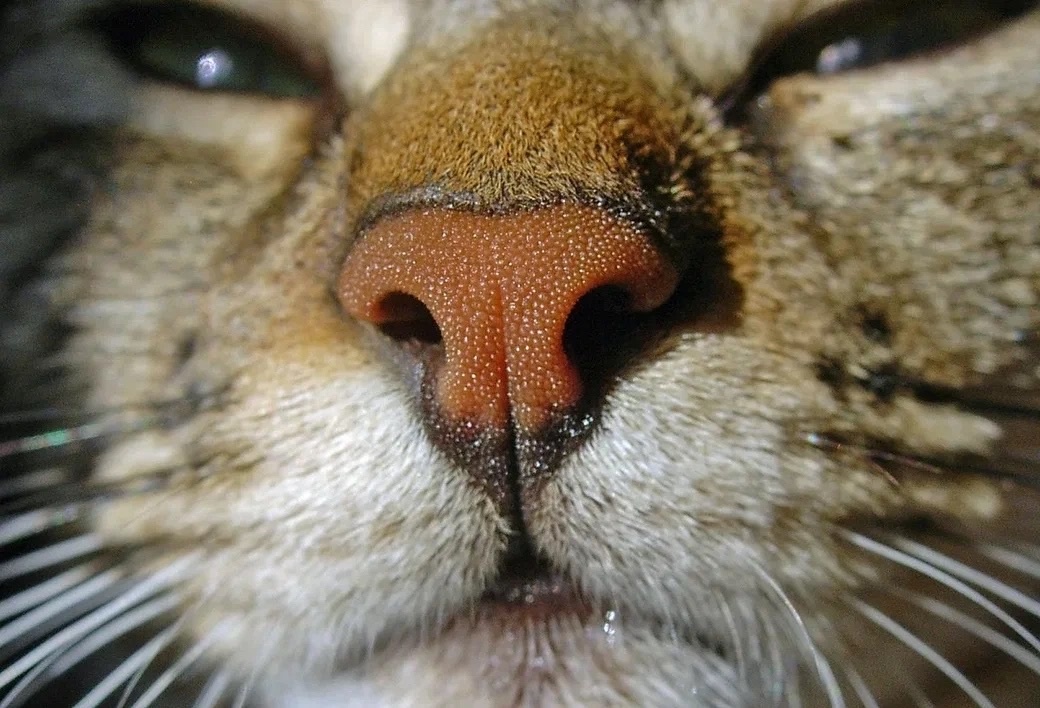 Нос мокрый из-за наличия на носу большого количества специальных желёз, которые выделяют серозный секрет богатый иммуноглобулинами, которые защищают питомца от инфекций. Нос покрывается тонким слоем и становится влажным. Нос также покрыт обонятельным эпителием и большим количеством кровеносных сосудов.