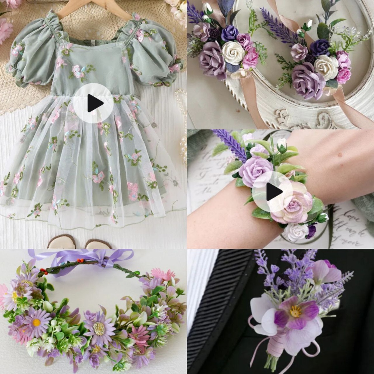 Платье, две бутоньерки на ручки (буду выбирать одну какую то), венок и бутоньерка на платье