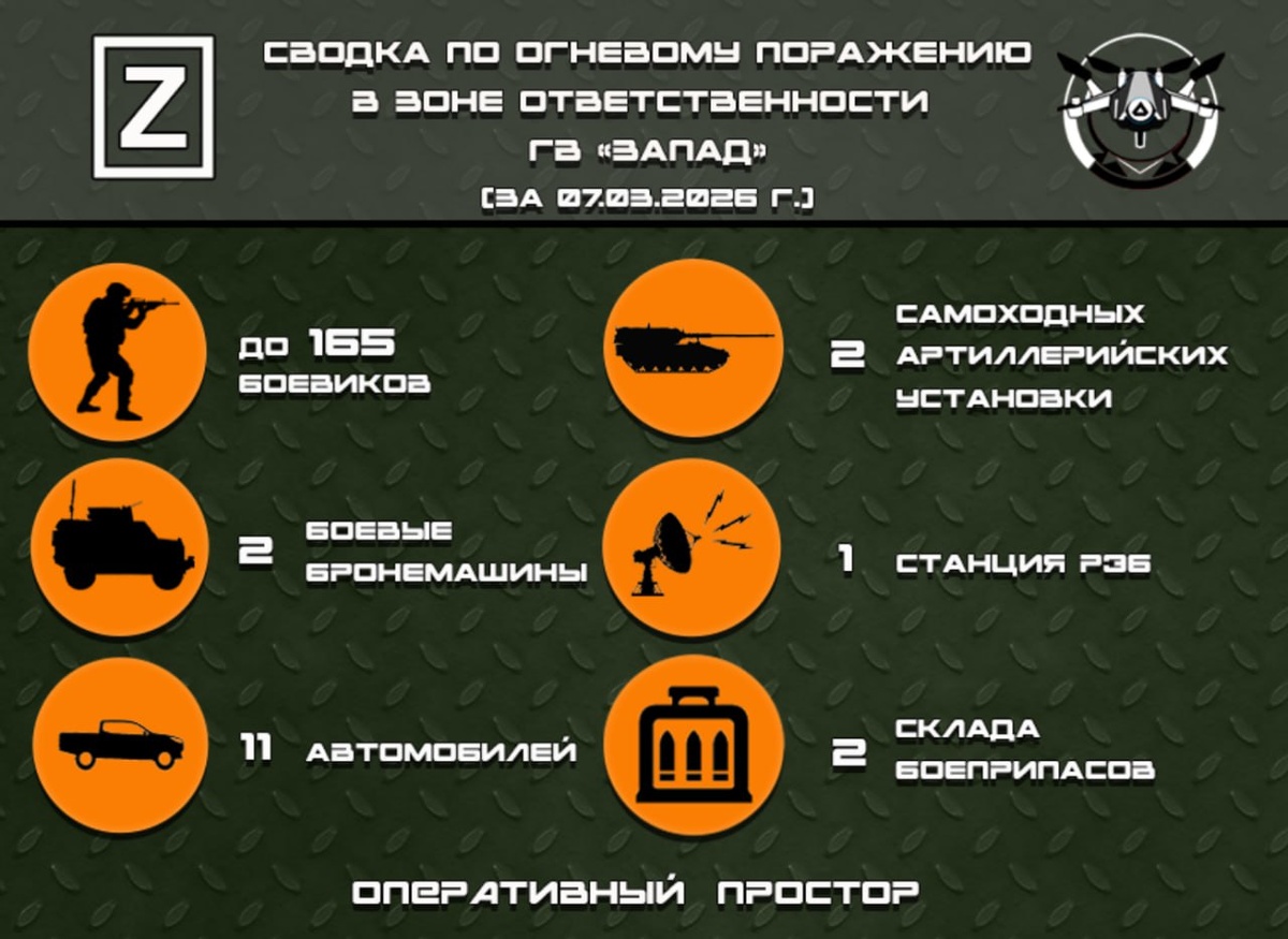Сводка по огневому поражению в зоне ответственности ГВ «Запад» за 07.03.2026 г