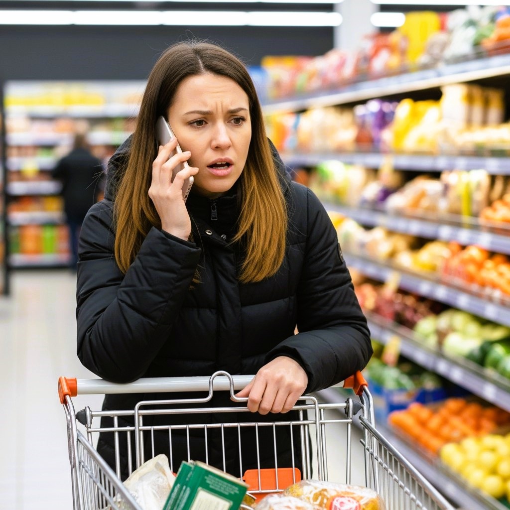 Елена молча смотрела на экран, а вокруг покупатели с корзинами спешили к кассам — кто за тюльпанами, кто за коробками конфет. Женщина рядом выбирала между розовым и белым вином, весело переговариваясь с подругой по телефону.