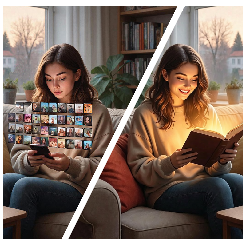 Почему второй вариант — лучшее, что вы сделаете для своего вечера. Давайте честно. Многие там были. Зашли в TikTok "на минуточку" — вынырнули через час, с опустошенной головой и лёгким чувством стыда. Пустой контент пролетел сквозь сознание, не оставив следа, как вода сквозь сито. А теперь представьте альтернативу. Пять страниц текста. Десять минут чтения. И после них — вы не такие, как были до. Почему? Время не исчезает — оно превращается в воспоминания. Десять минут в TikTok испаряются, оставляя после себя только пустоту и чувство: «Я что, серьёзно это смотрел?». Десять минут за историей — это прожитое приключение, которое остаётся с вами. Вы будете помнить героев, их голоса, их боль. Потому что вы за ними следили, а не просто скроллили. Эмоции накапливаются, а не сгорают. В коротких видео эмоции плоские и быстрые: улыбнулся — забыл. В истории, за которой вы следите, эмоции растут, развиваются, сменяются. Вы ненавидите Грока, потому что он агрессивен и несправедлив, или сочувствуете