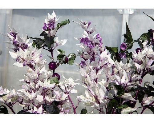 Острота: 10 000 - 20 000 shu Вид: Capsicum annuum Эффектный сорт острого перца с нестандартной внешностью - его главная особенность заключается в белоснежных листьях с насыщенными пурпурными веточками. Информация с сайта: pepperseeds.ru ✦ #рассада_перца #семена_перца #сорта_перца #острый_перец #перцы_рецепт #посадка_перца #перец_чили ☺️ Мы в Дзен 😄 Мы в Вконтакте 😌 Наш чат в Тг Peppers