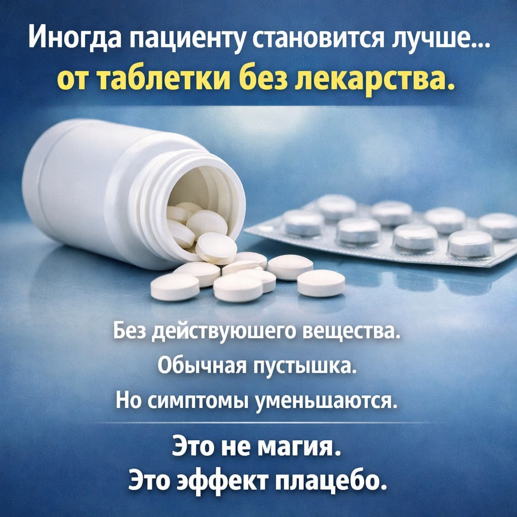 »? Друзья, готовлю для вас видео, которое может перевернуть ваше представление о лечении. Особенно если вы когда-либо принимали препараты для простаты, мужской силы или от хронической боли. Мы привыкли думать: таблетка = химия = результат. Но медицина знает факт, о котором часто молчат: 🔹 20–40% пациентов чувствуют реальное улучшение от препарата без действующего вещества. 🔹 Плацебо работает, даже если вы знаете, что это пустышка. 🔹 Это не самовнушение и не магия. Это реальная нейробиология. Почему фармацевтические компании не акцентируют на этом внимание? Как цвет и цена таблетки влияют на ваше самочувствие? И сколько популярных средств работают не лучше эффекта плацебо? В ближайшем выпуске я честно и без мифов разберу: ✅ Что такое плацебо на самом деле (спойлер: ваш мозг — мощная фармакология). ✅ Почему «информированное плацебо» лечит. ✅ Где заканчивается надежда и начинается доказательная медицина. Это будущее видео — первая часть большого разговора. Далее мы сравним эффект п