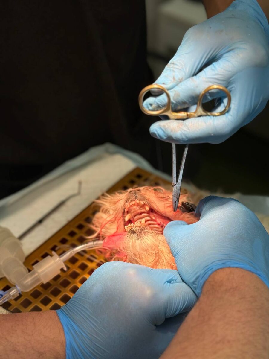 Этой собаке удалили почти все зубы. Причина – сильнейшее воспаление десен и гниение зубов, которое развилось из-за постоянной механической чистки у грумера. Несмотря на регулярные чистки, они не спасли ситуацию, потому что были проведены некорректно. В итоге, на операции, которую проводил эксперт стоматолог Соболев Александр Васильевич, пришлось удалить большую часть зубов. Беспокоиться не стоит, без зубов собачке будет гораздо легче жить, не испытывая постоянную боль. 💡 Следите за гигиеной полости рта вашего питомца, запишитесь на профилактический осмотр ротовой полости по телефону +74951200109 или через наш сайт.