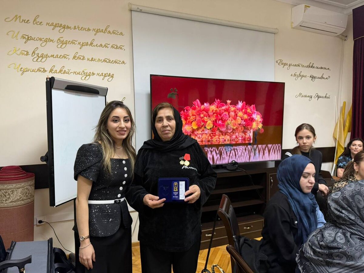 ! 💐✨ Заместитель координатора Дагестанского отделения ЛДПР Мадина Ибрагимова и руководитель Молодежного крыла ЛДПР Сафина Аркалаева вручили награды матерям участников СВО и волонтерам. 🎖️ Медаль «Мать солдата» получили женщины, воспитавшие защитников Отечества: 🔸 Багамаева Салимат Давудовна 🔸 Алиханова Маизат Алдеровна За активную помощь фронту отметили волонтеров: 🔹 Лукманова Гулимат Гасасаевна 🔹 Ярбилова Патимат Чугиловна 🔹 Ахмедова Хадижат Азиевна 🔹 Казанбиева Хамиз Магомедовна Также наградили председателя Союза женщин Дагестана Хасайбат Валиеву за объединение женских инициатив и поддержку семей военнослужащих. 🤝❤️ «Каждая из вас — пример беззаветной любви, мужества и милосердия. Низкий вам поклон!» — сказала Мадина Ибрагимова. Спасибо за вашу силу и доброту! 🙏🌷