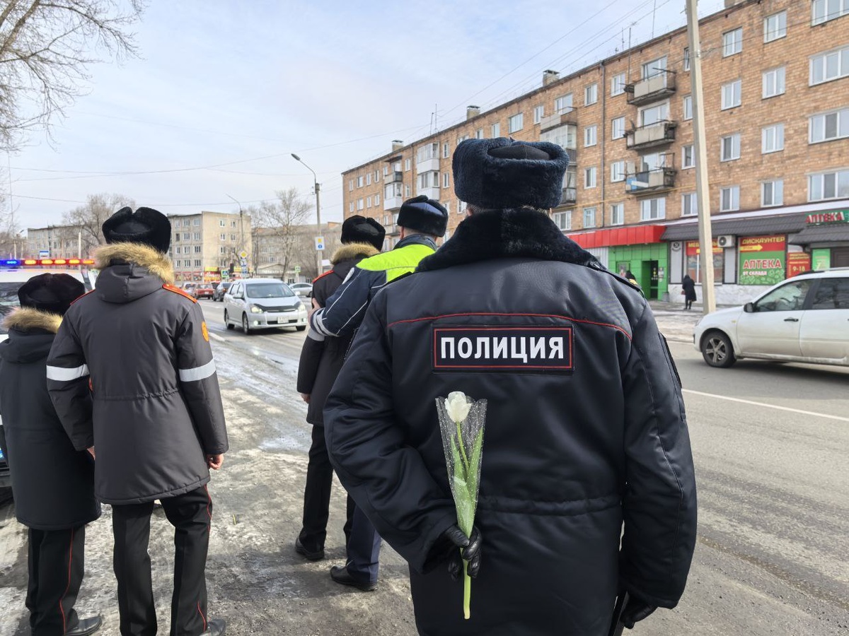 В Минусинске кадетско-полицейский патруль принял участие в праздничной акции «Цветы для автоледи