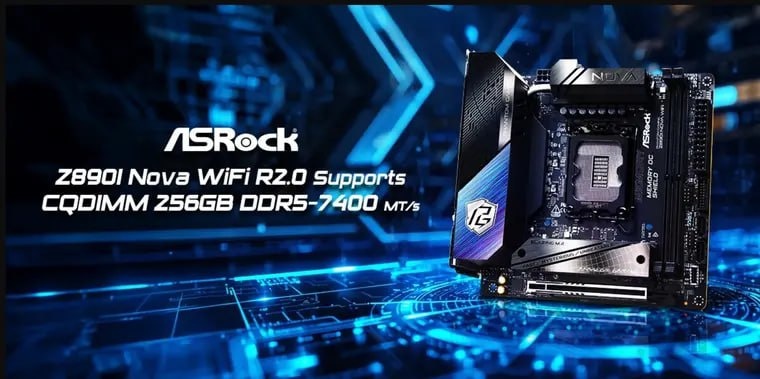 ASRock показала редкий для компактной платы сценарий, где огромный объём памяти не убил частоту, и это сразу делает историю заметной для рабочих станций и тяжёлых сборок: • На плате Z890I Nova WiFi R2.0 удалось запустить 256 ГБ DDR5 на скорости 7400 МТ/с • Конфигурация включает два 128-ГБ модуля Kingston с четырьмя рангами • Речь идёт о памяти класса CQDIMM, где тактовый драйвер вынесен на сам модуль • Базовой планкой для таких модулей обычно называют 7200 МТ/с, так что ASRock поднялась выше этого рубежа • Платформа тестировалась с процессором Intel Core Ultra 7 265K • Форм-фактор платы — Mini-ITX, и для такого объёма памяти на компактной системе результат выглядит особенно нетипично • Главная суть здесь не в рекорде ради рекорда, а в том, что высокая ёмкость памяти всё меньше упирается в низкие частоты • Это скорее история не для массового ПК, а для профессиональных задач, где важны и объём ОЗУ, и пропускная способность Mini-ITX с 256 ГБ ОЗУ — это уже рабочая станция мечты или всё ещ