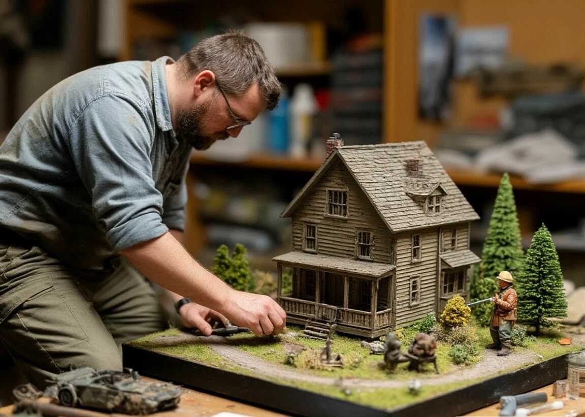 Доброго времени суток уважаемые подписчики и гости канала Деревенский моделист. Прежде чем начать рассказ попрошу в комментариях сильно тапками не кидать. Дело в том, что это первый опыт постройки диорамы, более того я вообще не знаю как и что делать правильно и по этому делаю чисто по наитию. И так. Само основание было вырезано из обрезка стеновой панели. Потом с помощью текстурной пасты сделал покрытие, типа земля во дворе. Но тут же выяснилось, что я сильно промахнулся с цветом. Получилось какое то болото. Пришлось с помощью вот этих жижек исправлять ситуацию. В результате получилось вот такое. И на последок при помощи клея ПВА и вот этой присыпки. Сделал типа вытоптанной травы. Кому как, а мне пока нравится. Когда всё это хозяйство высохнет буду расставлять всякую всячину. А пока у меня все новости на сегодня. Пишите комментарии и замечания, ну и про лайки не забудьте. Всегда ваш, Деревенский моделист. Реклама. ООО «Яндекс Маркет», ИНН 9704254424, erid: 5jtCeReNx12oajxU1o4CXba