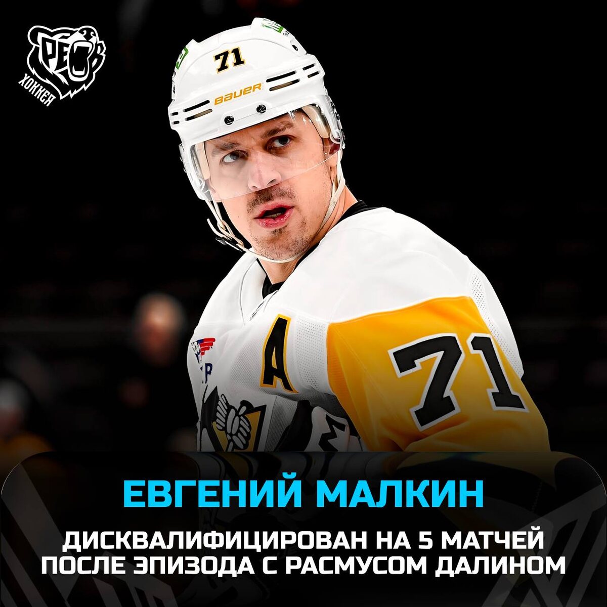 🐧 Плохие новости для фанатов «Питтсбурга»! НХЛ дисквалифицировала Малкина на 5 игр после эпизода в матче с «Баффало». В ходе встречи форвард «Питтсбурга» нанёс удар клюшкой по голове защитника Расмуса Далина, за что был удалён до конца игры. Помимо пропуска матчей, россиянин получил штраф в размере $158 000. Серьёзное наказание за грубую игру. Что думаете о решении лиги? 🐻 Слышишь? ЭТО РЁВ ХОККЕЯ