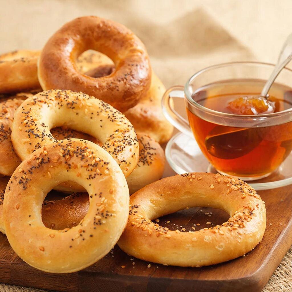 - Бублик: По легенде, впервые появился в Польше в XVI веке, где назывался "бейгелем". Впоследствии этот продукт распространился по Восточной Европе, включая Россию, и получил новое звучание — "бублик". Изначально он изготавливался из пресного теста, но постепенно эволюционировал, превратившись в дрожжевое изделие.
