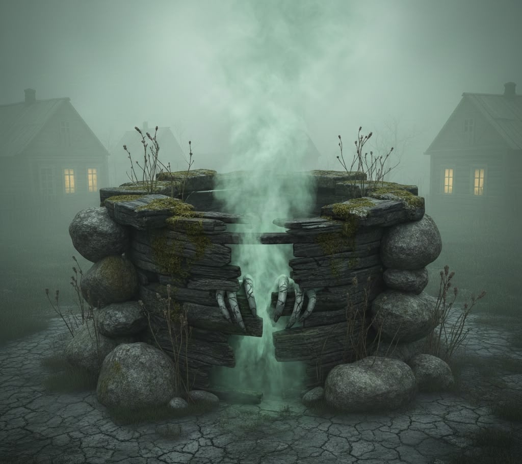 «Этот колодец вырыли на месте чумного захоронения. Вода там не течет — она дышит. Там живет Ихти — нежить, у которой нет костей, только бесконечные пальцы и вечный голод. Не подходите к пригорку, иначе она запомнит ваш запах».