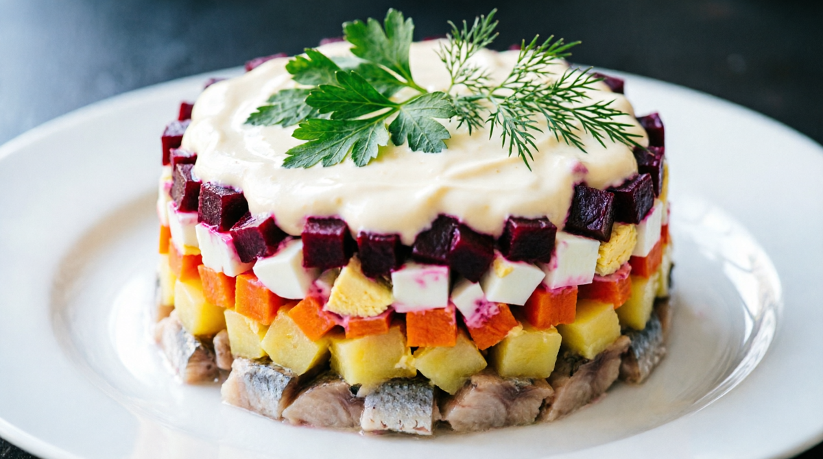 Сельдь под шубой — классический праздничный салат с насыщенным вкусом и эффектной подачей. Идеально подходит для торжественного стола и семейных праздников.