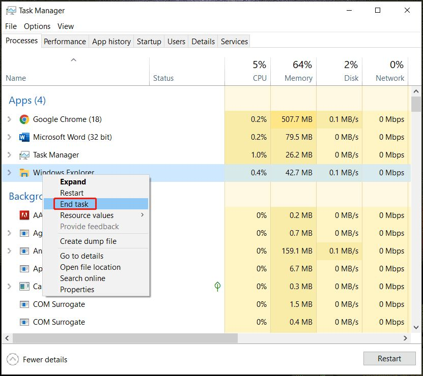 - Найдите нужный процесс (например, game.exe или photoshop.exe)