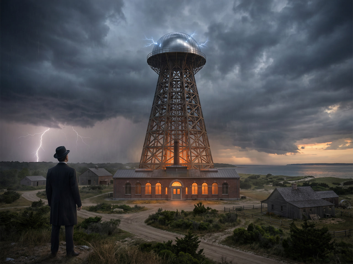 В 1901 году Тесла начал строительство башни Ворденклиф в Шорхэме на Лонг-Айленде. Финансирование дал Дж. П. Морган — 150 тысяч долларов, по тем временам огромная сумма, на беспроводную передачу телеграфных сигналов через Атлантику, чтобы обогнать Маркони. Архитектор Стэнфорд Уайт спроектировал основное здание — кирпичное, 29 на 29 метров, в стиле итальянского ренессанса. Внутри разместились лаборатория, котельная с паровой машиной и угольным генератором Westinghouse на 200 киловатт, машинная мастерская, комната для инструментов и даже стеклодувная. Всё это питало эксперименты.