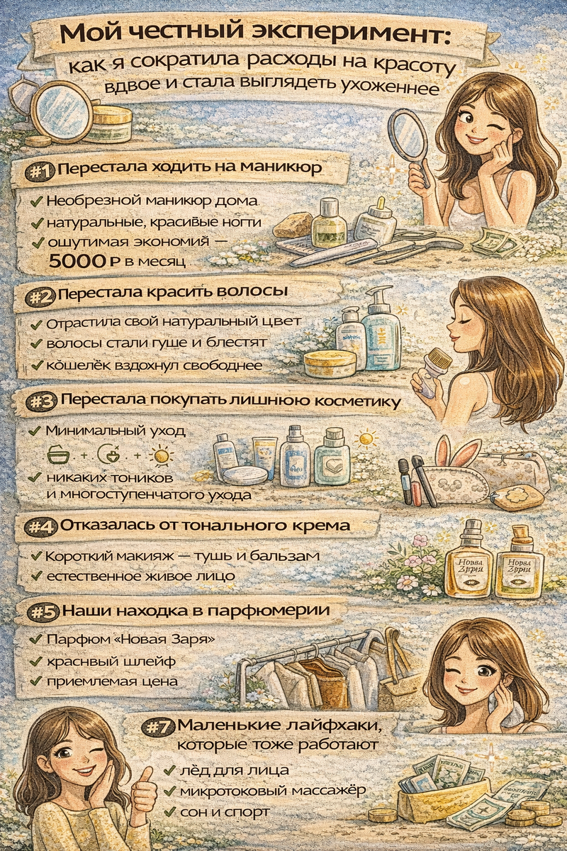 Новая помада, потому что «все её хвалят». И я поняла: я трачу много, а выглядеть лучше не стала. Тогда я решила провести эксперимент: сократить расходы на красоту вдвое и посмотреть, что будет. Честно? Результат меня удивил. Я стала выглядеть ухоженнее, спокойнее и натуральнее. Рассказываю, что именно я изменила. Раньше каждые 3–4 недели: — маникюр