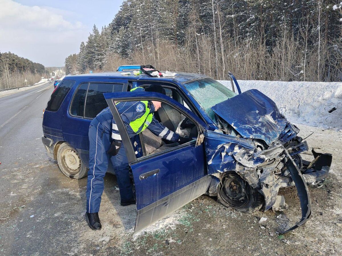 Два автомобиля столкнулись на трассе под Берёзовским, один из водителей погиб
