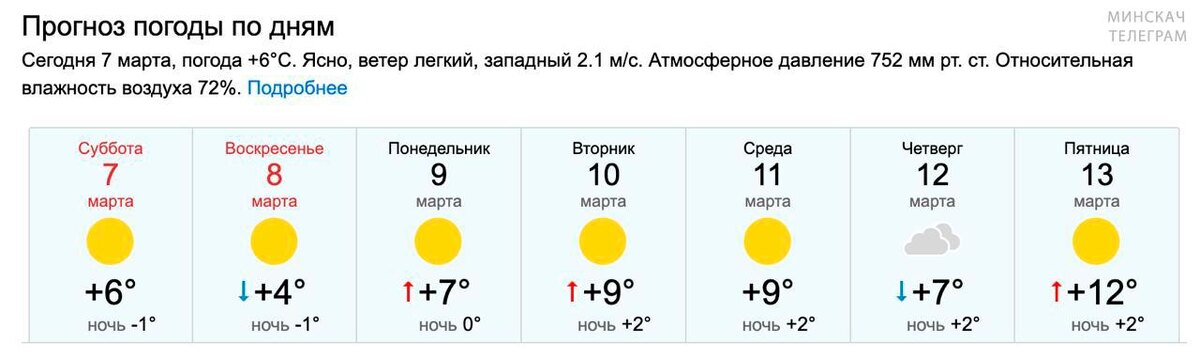 С 8 марта в Минске начнётся постепенное потепление. В течение недели температура воздуха может подняться до +12°C. Синоптики также прогнозируют много солнца и в целом сухую погоду. ✔️ Минскач • Подписаться