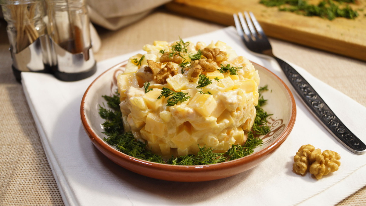 Салат с ананасом и курицей - это не блюдо, а чудо кулинарии. Готовится за 10 минут, а за праздничным столом съедается первым. И не удивительно. Ведь он такой вкусный, что бывает трудно остановиться и не взять добавку. А за счет того, что приготовить такой салат с курицей можно быстро и просто, его несложно включить и в меню на каждый день. Рецепт этого салата с курицей состоит всего из трех основных ингредиентов. И они настольно гармочисно сочетаются друг с другом, что не оставляют равнодушными даже искушенных гурманов. Многие считают этот салат для праздника одним из самых вкусных. В интернете ему дали название "Дамский каприз". Кстати, к столу это блюдо можно подавать не только как салат. Об этом расскажу чуть позже. куриная грудка в готовом виде – 250 г