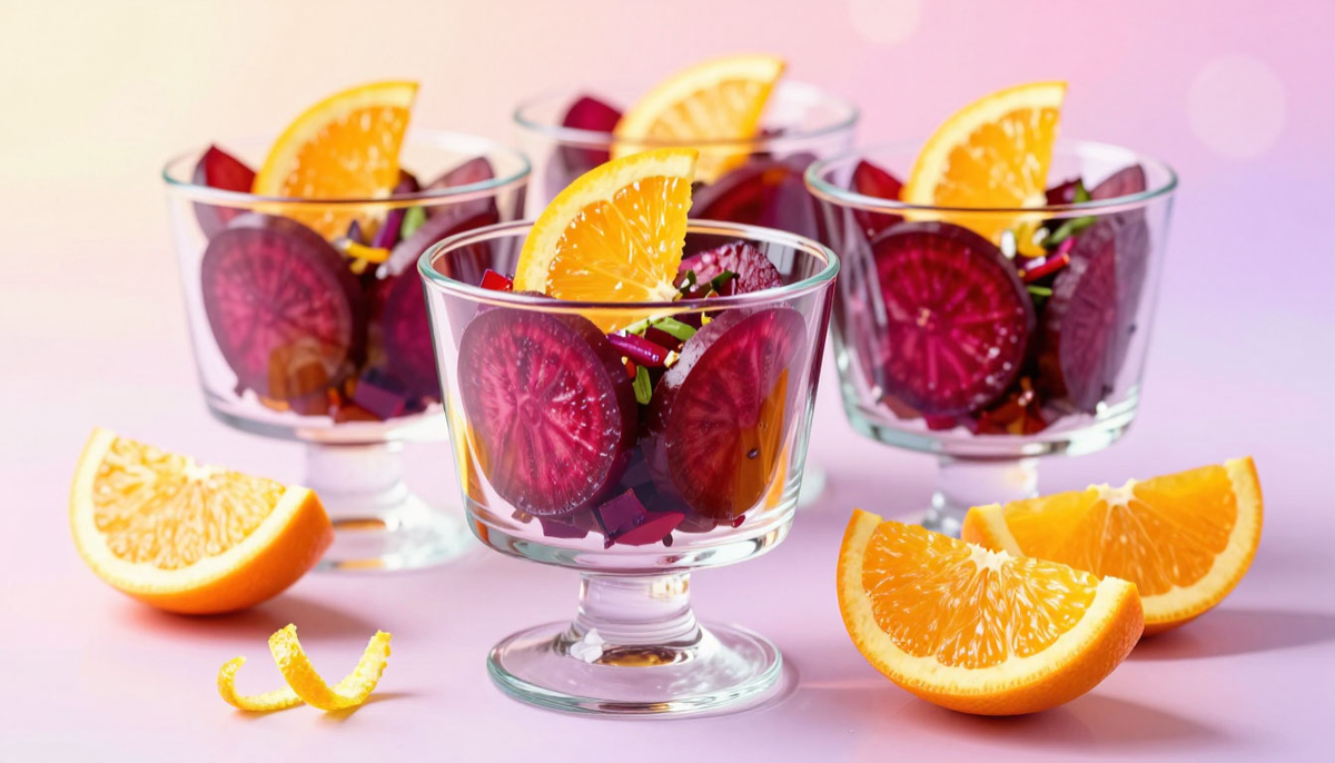 Вы всё еще подаете свекольный салат в общей миске? Тогда вам стоит прочитать модернизированные рецепты - с бокалами, рулетами и слоями, которые взорвут ваш праздничный стол и заставят гостей забыть про классический рецепт. Традиционный свеклоьный салат - это как старый свитер. Привычно, но скучно. Он лежит на краю стола, его берут из вежливости, а потом забывают. Пора это изменить. Если вы не сделаете салат по‑новому, то рискуете услышать от гостей «снова этот салат», остаться в памяти как хозяин с консервативным меню и упустить шанс удивить и запомниться. Вот три рецепта, которые не просто украсят стол - они вызовут споры, дискуссии и желание немедленно повторить. Приступим к рецептам. Это не салат - это коктейль вкуса и эстетики. Подавайте в винных бокалах, чтобы гости почувствовали себя в ресторане, а не за обычным праздничным столом. Ингредиенты (на 4 порции): Приготовление: Цитрус и имбирь в свекольном салате - это вызов канонам. Кто‑то скажет «так нельзя», другие же будут восхища