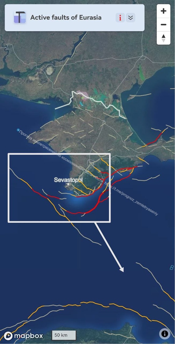 Похоже, что вновь отъехала на юго-восток Крымская рифтовая зона (на этот раз провалом в облачности)