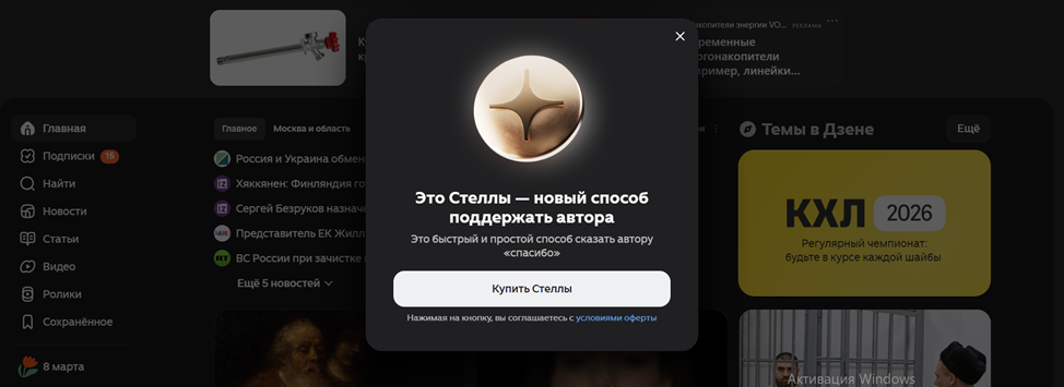Стеллы в Дзен. Финансовая поддержка авторов пользователями.
