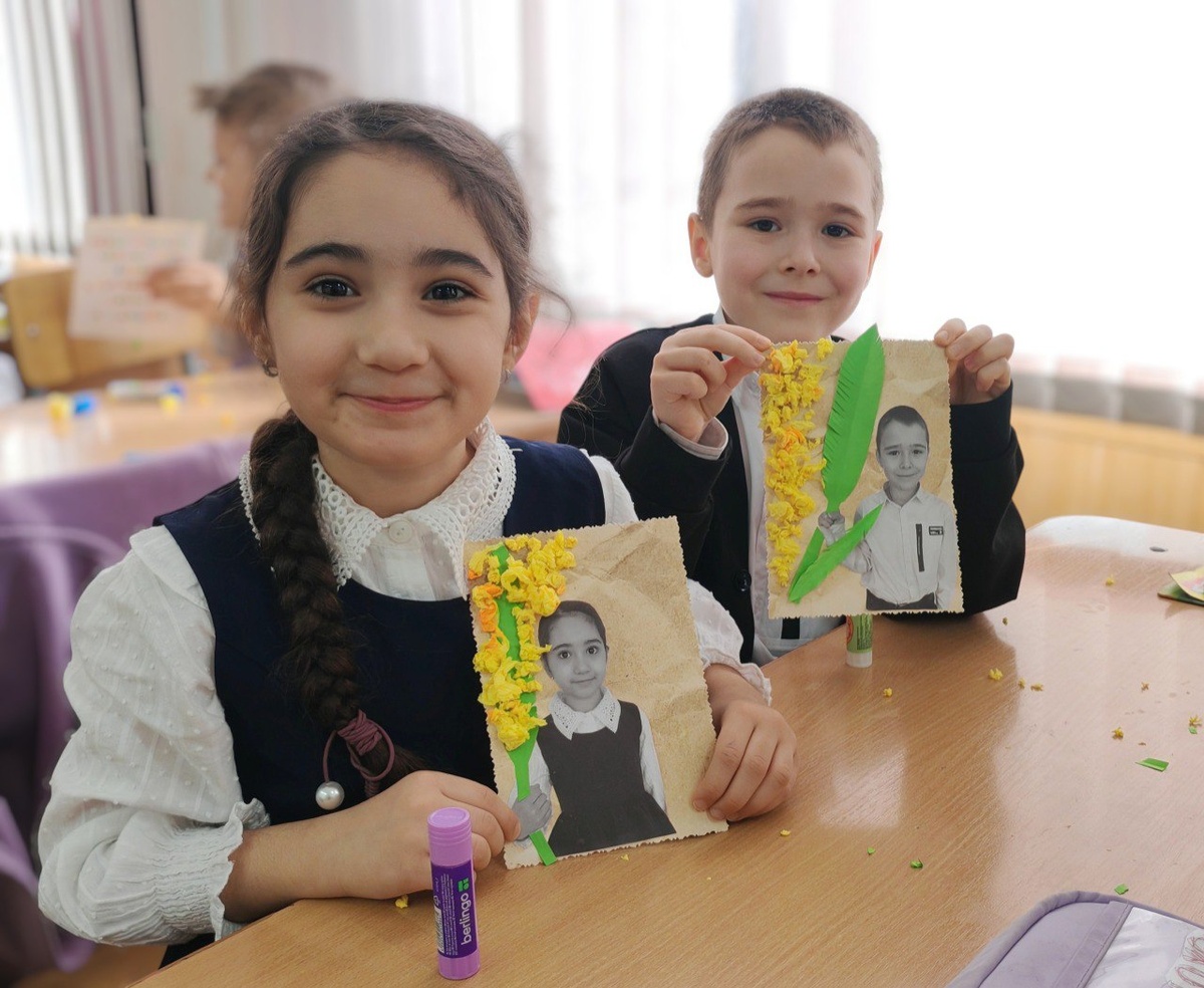 С.В. Михалкова, создали уникальные поздравительные открытки-подарки. Открытки выступают как выразительный знак внимания и заботы, а подарки, сделанные детскими руками, обладают особой ценностью для самых близких. С применением крафтовой и цветной бумаги, клея, личных фотографий и безграничной фантазии, ребята воплотили в своих творениях весеннюю композицию с ярко-солнечной мимозой. В завершение мастер-класса ребята поучаствовали в забавной игре под названием «Веселые портреты». Задача состояла в том, чтобы, комбинируя предложенные элементы: губки, носик, глазки, ушки, щёчки, создать собирательный образ мамы, бабушки, подруги или одноклассницы. Каждый участник в этот день унёс с собой не только собственноручно изготовленные открытки, наполненные теплом и искренностью детских сердец, но и заряд позитива.