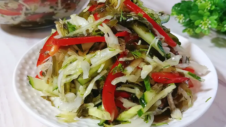 Быстрый и легкий в приготовлении салат из морской и белокочанной капусты, всего за несколько минут. Сочетание двух видов капусты делает блюдо необычайно полезным, а свежие овощи добавляют ему сочности и яркости. 🥗Ингредиенты: