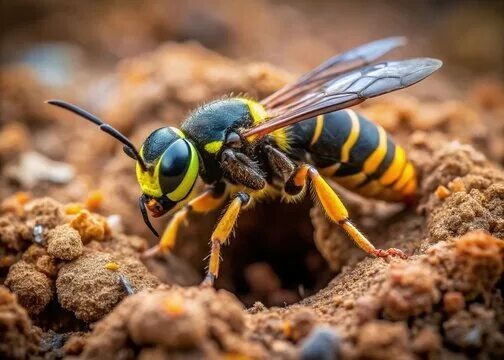 - одно — фотография головы осы (или стилизованное «лицо»);